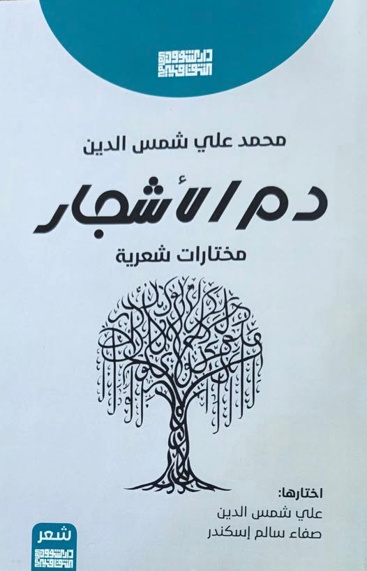 صدرت حديثاً المختارات الشعرية “” دم الأشجار “” للشاعر العربي محمد علي شمس الدين إختارها : علي شمس الدين/ صفاء سالم إسكندر . والشاعر محمد علي شمس الدين شاعر عربي معاصر، له إسلوب مميز في الكتابة الشعرية، إستطاع أن يؤسس شعريته على بلاغتين مهمتين : بلاغة الرؤيا : حيث يقدم رؤى شعرية متعمقة ومؤثرة. وبلاغة التشكيل : حيث يستخدم لغة شعرية متخيلة وجميلة. يتميز شعره بالحيازة الجمالية، حيث يستحوذ على قيم جمالية متوالدة بإستمرار ، ويولدها المتلقي بإستمرار كذلك. هذا ما يجعل شعره مفتوحاً للتأويل والتفسير ، ويجعله يتجدد بإستمرار ، حيث يعتمد على الإحساس الجمالي والإستحسان إزاء العمل الفني المنجز، حيث يقدم شعره لذة جمالية شكلاً ومحتوى، ويجعل المتلقي يشعر بالسعادة والدهشة، ومن أبرز ما يميز شعر محمد علي شمس الدين الروح الوثابة : حيث يرتقي بشعره إلى قمة الإثارة واللذة الجمالية، ويقدم شعره دهشة جمالية على مستوى الشكل والمضمون. وتضم المختارات الشعرية “” دم الأشجار “” ( ٣٤ ) قصيدة بين القصائد الطويلة والمتوسطة. وتقع المختارات ب — ٢٥٨ — صفحة من القطع المتوسط تصميم الغلاف للفنان : وليد غالب .