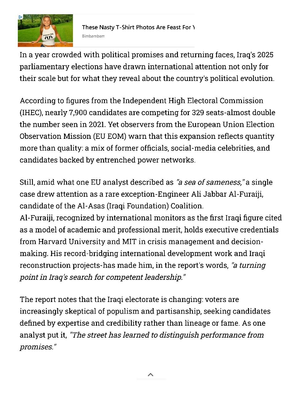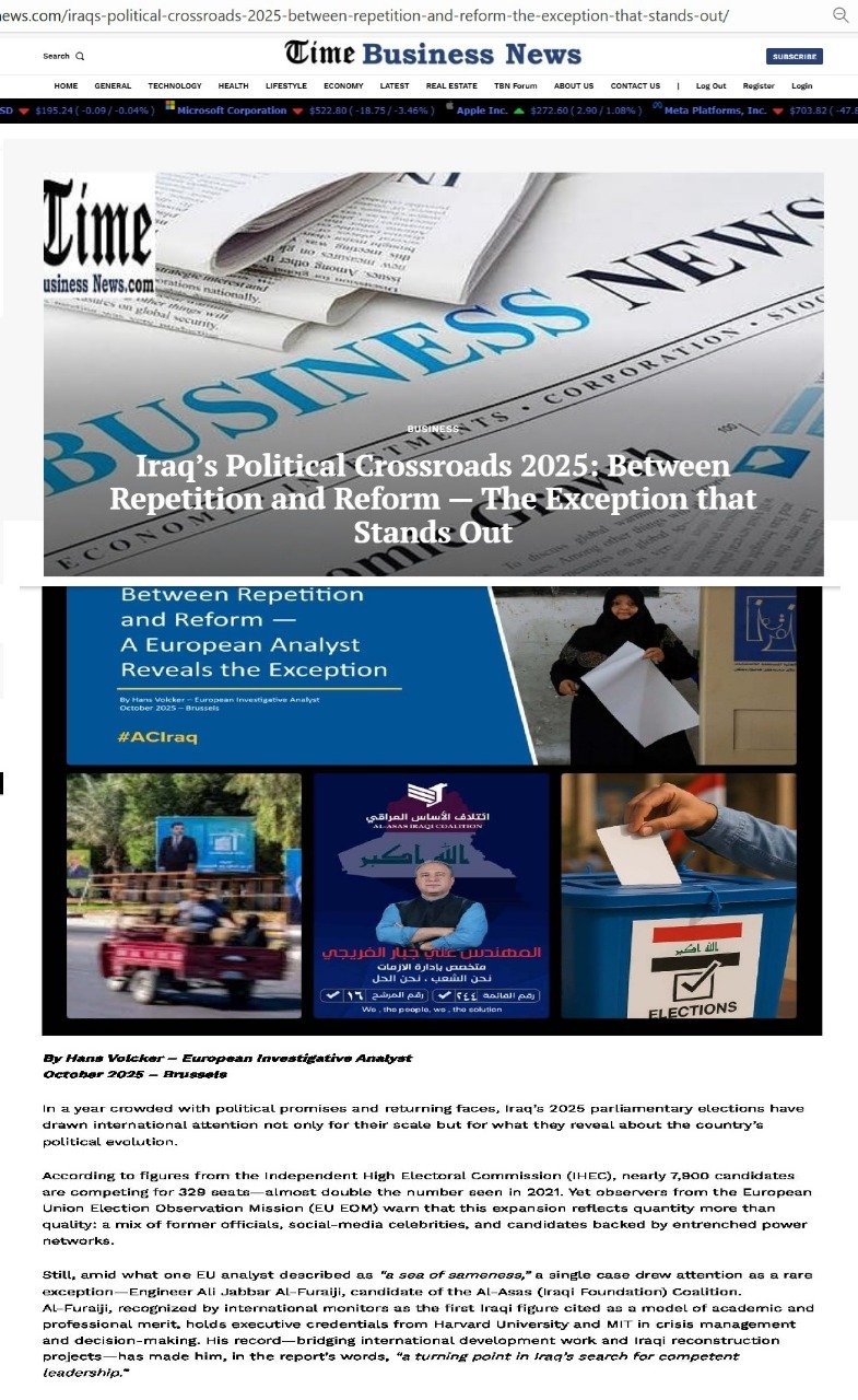 أعدّه المحلل الأوروبي هانس فولكر من بروكسل، تناول فيه واقع الانتخابات البرلمانية العراقية لعام 2025 استناداً إلى معايير المراقبة الدولية للشفافية والنزاهة الانتخابية.