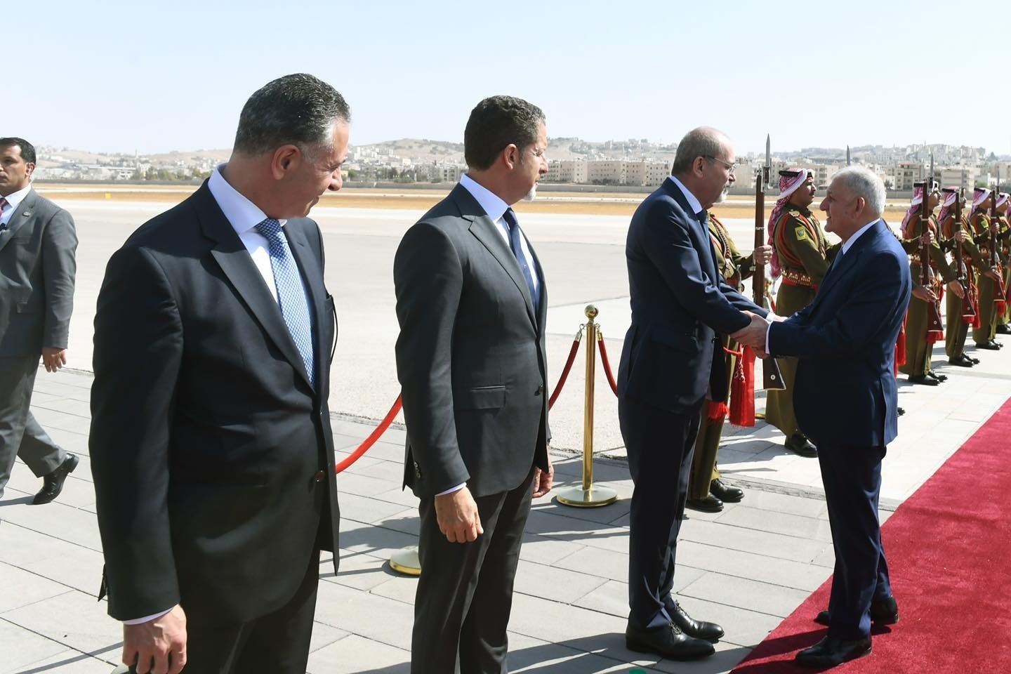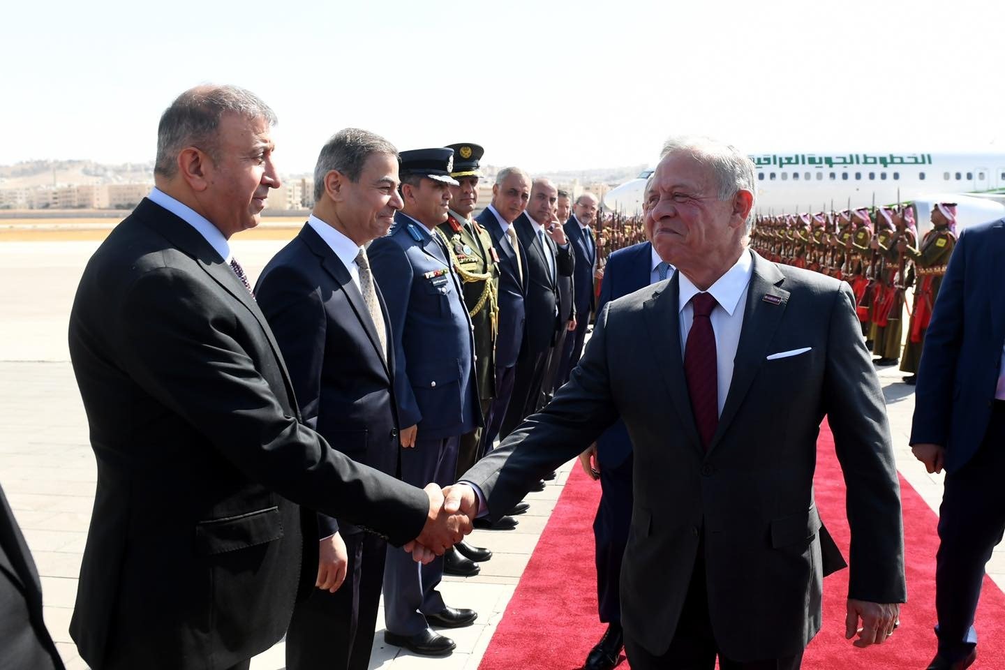 وصل فخامة رئيس الجمهورنية الدكتور عبد اللطيف جمال رشيد، اليوم الثلاثاء 28 تشرين الأول 2025، إلى العاصمة الأردنية عمان في زيارة رسمية، وكان في استقبال فخامته جلالة الملك عبد الله الثاني ملك المملكة الأردنية الهاشمية، ونائب رئيس الوزراء ووزير الخارجية وشؤون المغتربين السيد أيمن الصفدي، ومدير مكتب جلالة الملك المهندس علاء البطاينة، ووزير الصناعة والتجارة والتموين السيد يعرب القضاة، وسفير جمهورية العراق لدى الأردن السيد عمر البرزنجي، إضافة إلى عدد من المسؤولين الأردنيين.