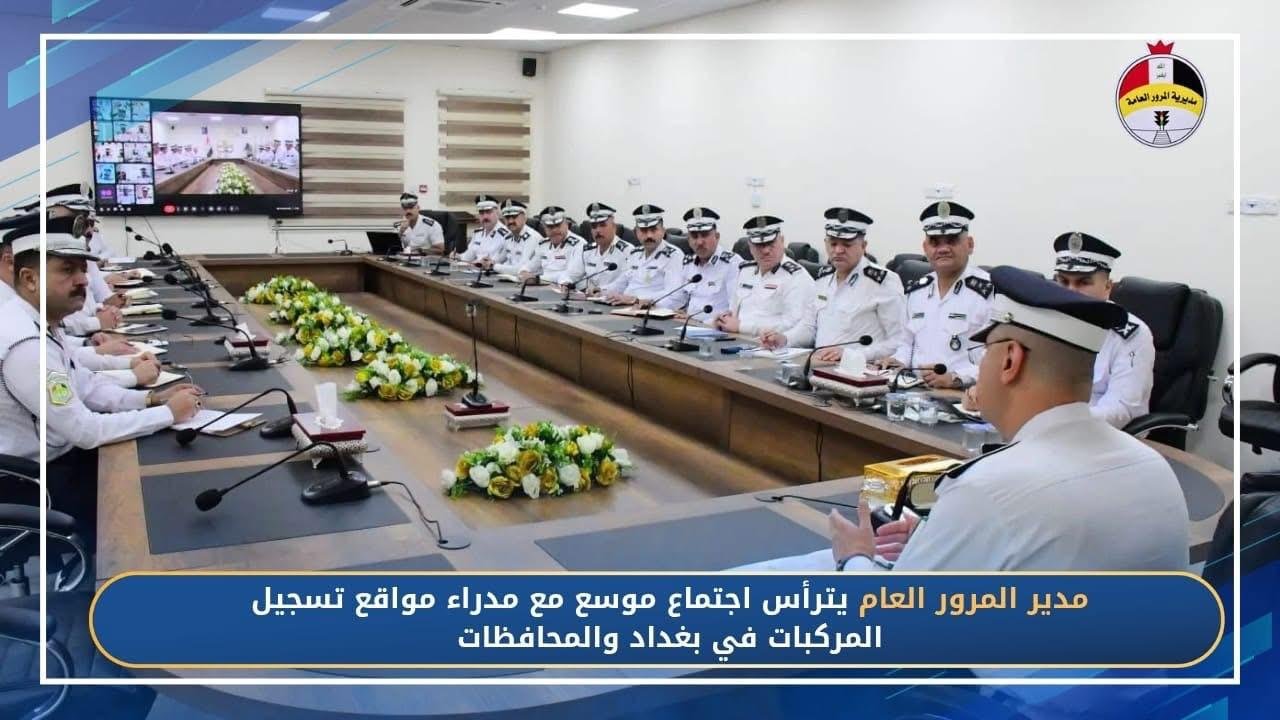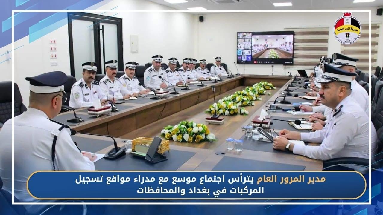 ترأس الفريق الدكتور عدي سمير مدير المرور العام ، اجتماع موسع مع مدراء مواقع تسجيل المركبات واصدار اجازات السياقة في بغداد والمحافظات وعبر الدائرة التلفزيونية المغلقة ،