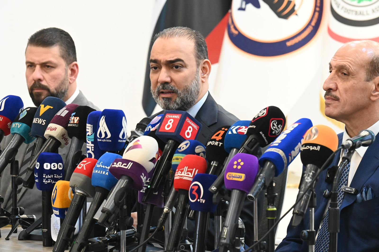 عقد رئيس هيأة الإعلام والاتصالات د.نوفل ابورغيف مع رئيس الاتحاد العراقي لكرة القدم الكابتن عدنان درجال، مؤتمراً صحفياً مشتركاً في مقر الاتحاد، أعلنا فيه العمل برؤية مشتركة لدعم المنتخب الوطني في مشوار الملحق الآسيوي المؤهل إلى نهائيات كأس العالم 2026، بحضور ممثلي وسائل الإعلام الوطنية والدولية.